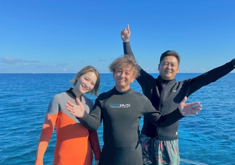 今日から遊びに来てくれたWさんと一緒にIさん夫妻のライセンス講習もしてきました。 最高の天気で透明度も良かったですね! まずはボートから潜降の練習ですね! 泳ぎだすとクマノミもいるし、水中の世界楽しいね~ 慣れてくるとい