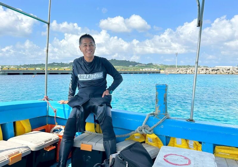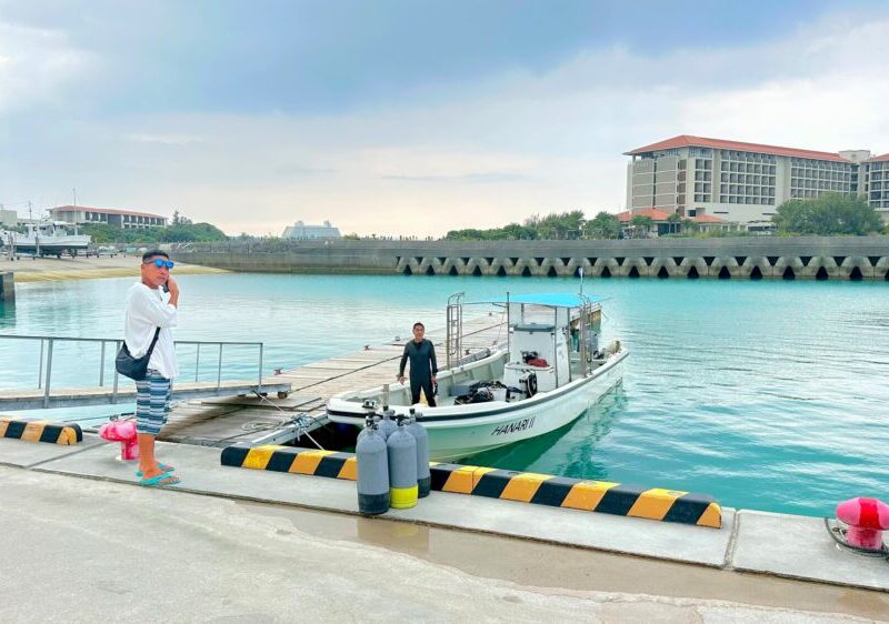 2日目のAさん、北風だけど、今日も暑い日になったね! 泳ぐ前にフィンピポットしてからふあっと泳いで行きましょう! 浅瀬の根の上のクマノミも見に行きましたよ! 今日もスキル練習、ウエイト脱着は本当にむずかしいんだよね~!