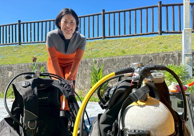 今日からライセンス取得で遊びにきたAさんです。 沖縄にいるうちに、ダイビングたくさん楽しんでいきましょう~ 砂辺の海は少し波があったので、少し潮が引くまで学科の勉強をしてから潜ることにしました。波は落ちてきましたね~ そ