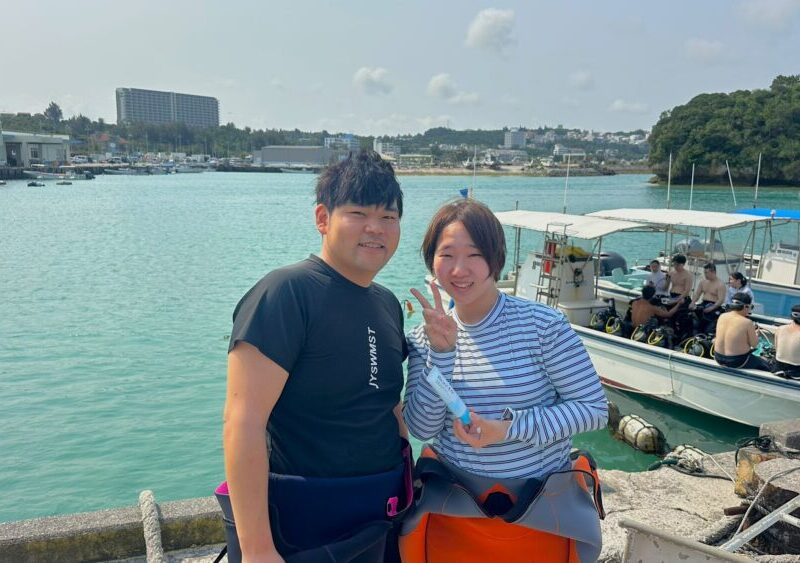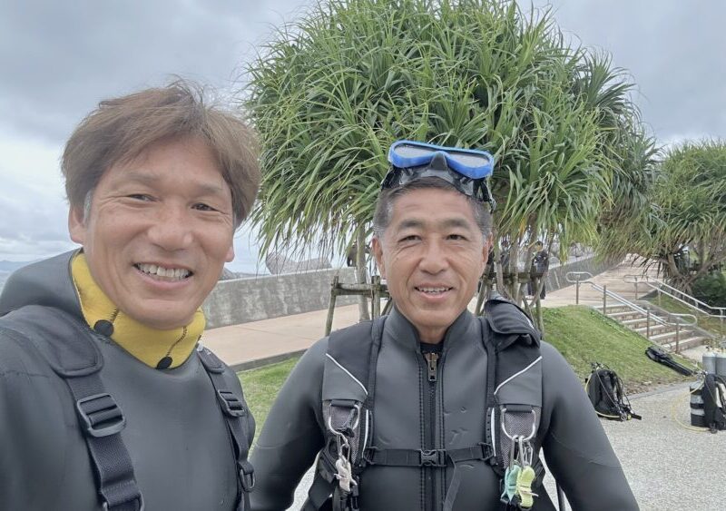 久しぶりのダイビングですが、遊びにきてくれたEさんです。以前沖縄に住んでいて、北谷でもよく潜っていたんだって~ 海に潜ってみたら、体も覚えているようでスイスイ泳いでましたよ! 古い水中ポストは水深20mにあって、ちょっと