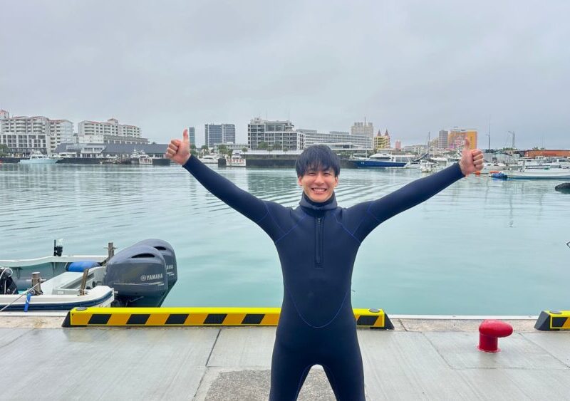 お天気は曇りでちょっと残念ですが、連休の中日は7名のゲストと一緒に潜ることができました。300本記念のKさんおめでとうございます! 海も穏やかな所を狙って読谷村の海へ、水面は穏やかそうでしたが、段々と流れが出てきて、最後