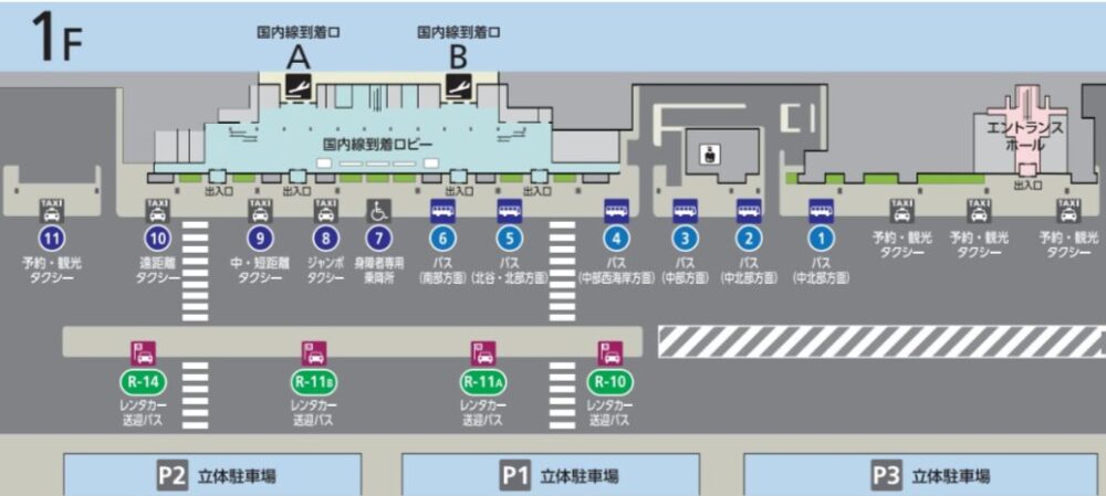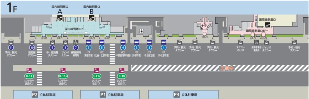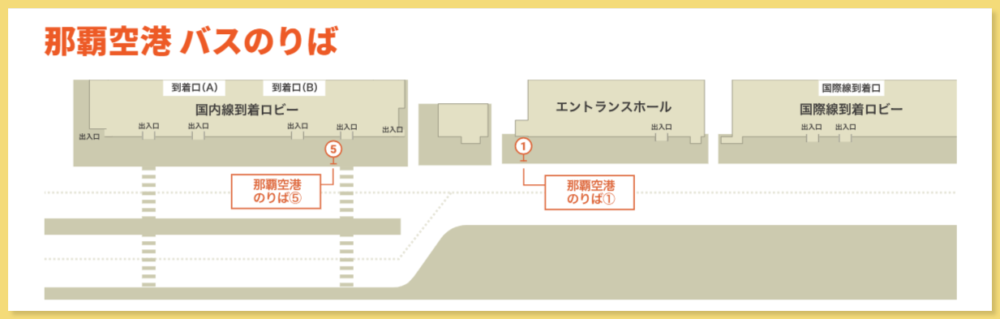 那覇空港の乗り場は国内線ターミナルの1階、到着出口①から出て、右側にあります。