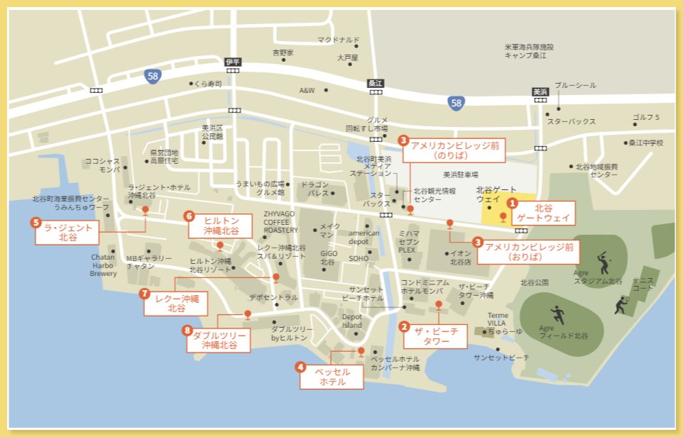 | 北谷のりば | 北谷 ゲートウェイ | 各ホテル& 北谷 ゲートウェイ | 北谷 ゲートウェイ |