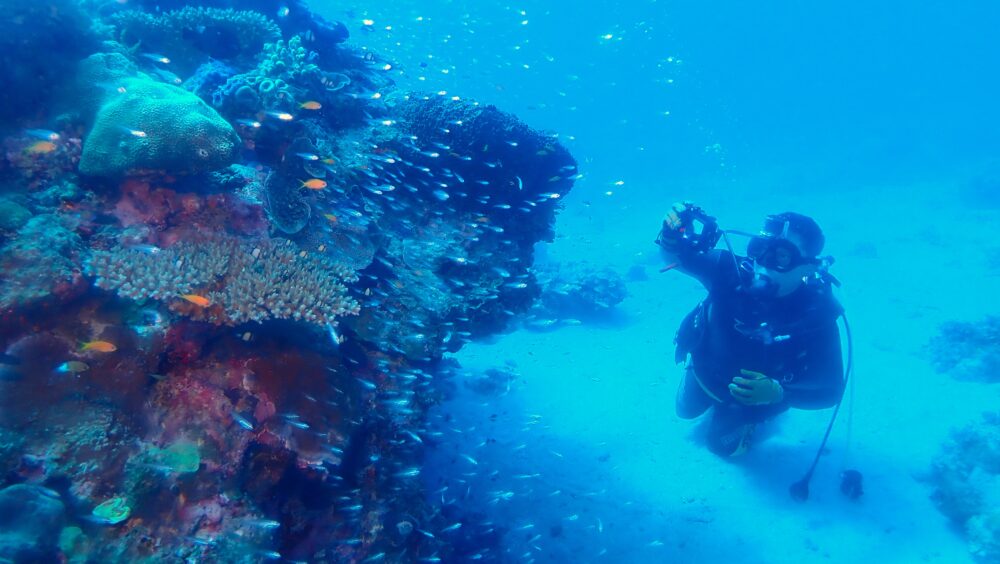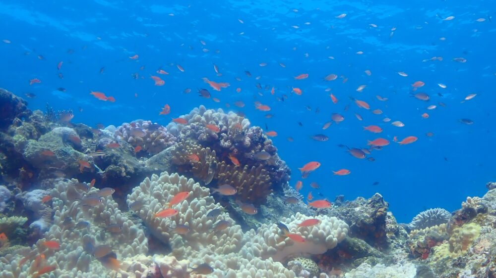 デバスズメダイの群れがあちこちで見られて、天然の水族館のようなイメージでしたね。