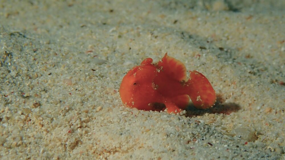 ちょっと小さいオレンジのカエルアンコウです。最近はよく見れるのでうれしいですね~
