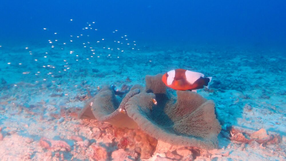 トウアカクマノミの所にはキラキラとした魚もいていい感じ