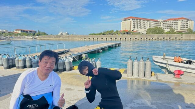 ファンダイビング万座の海も回復してきたので潜ってきたよ! 2025年10月25日 オーシャンビーチ 沖縄本島でダイビング 天気も予報よりもいい感じで、青空と暑さが出てきました! 今日がラストのYさんとOさんで潜ってきました。 透明度も少しずつ良くなってきた万座、砂地も …