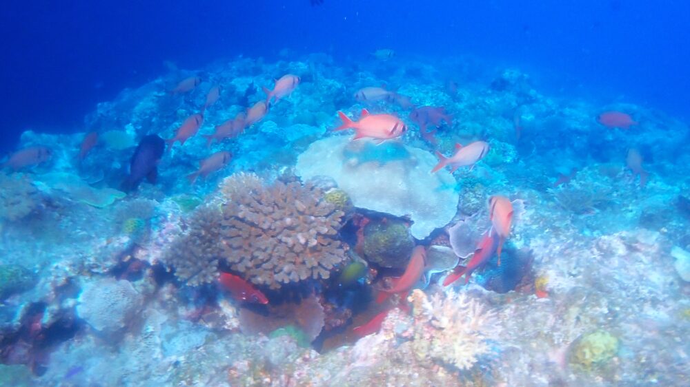 リーフにたくさんのアマミスズメダイやロクセンスズメダイが群がっているけど、なんでこんなにいるんだろう?