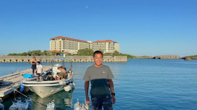 ファンダイビング今回はいい天気で潜れましたね!R7.11/08 2025年11月8日 オーシャンビーチ 沖縄本島でダイビング ハイヤットホテルの上にまんまるの月がキレイに見えましたね~ 今日もNさんとゆったり潜りに来ました。 リーフ …