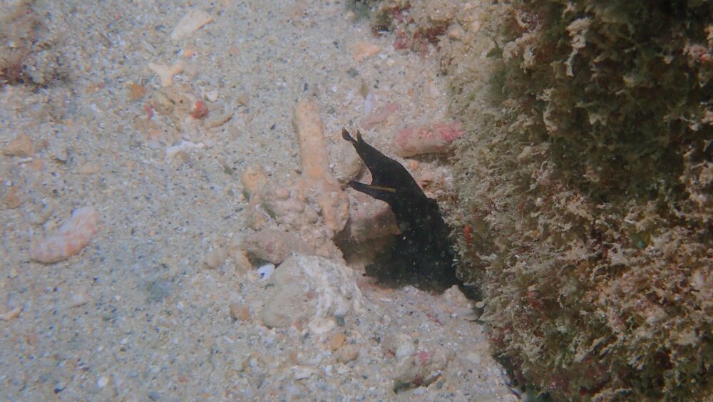こんな所に、ハナヒゲウツボの幼魚がいました。成魚までなってくれないかな~