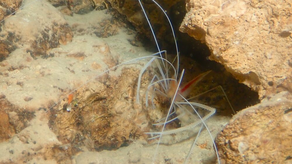 2本目は掘り込みの奥にいるクメジマオトヒメエビ、今日も少し隠れながら顔を出していましたよ!