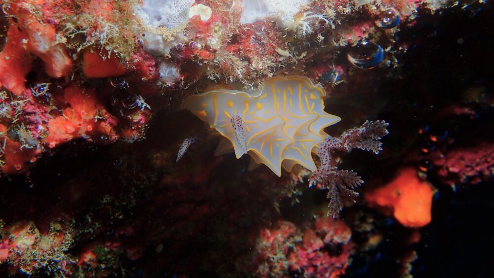 掘り込みの影に隠れてじっとしていましたね、キスジカンテンウミウシ