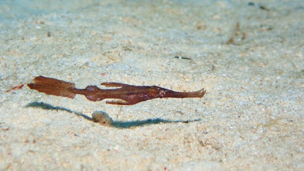 瓶の近くをフラフラしていたのはホソフウライウオ、目がバッテンみたいに見えませんか?