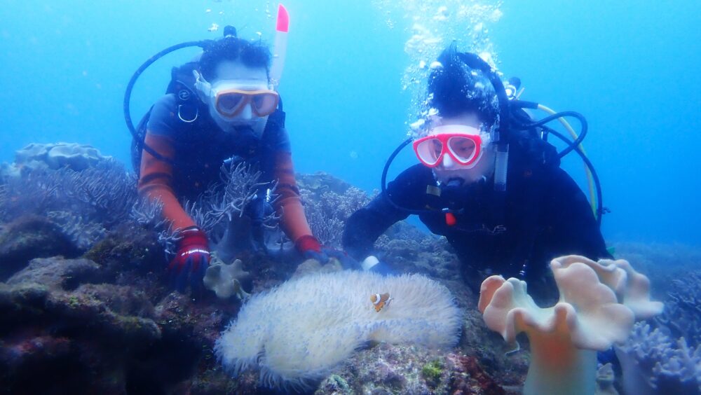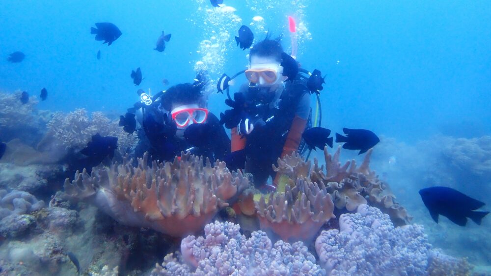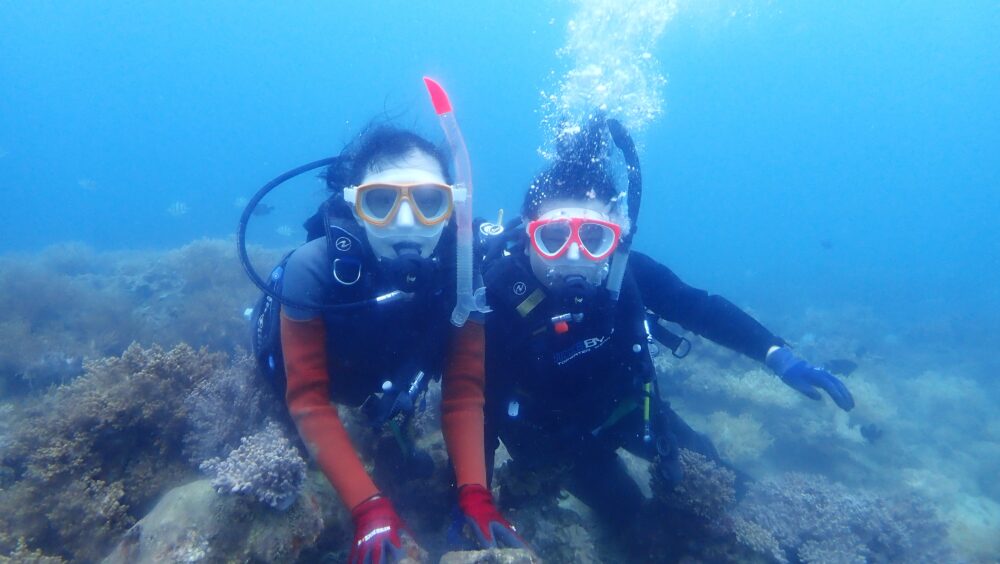 青空は見えていたんだけど、海はまだ波があって、北谷の海で潜りましょうね~