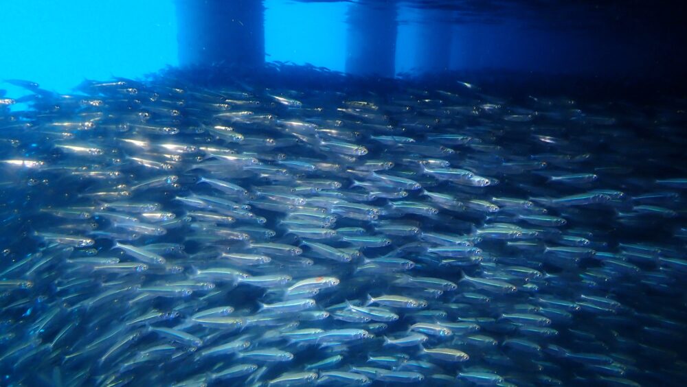 桟橋したには、今もいるミジュンの大群、水温が下がってきてそろそろ何処かに行くかな?