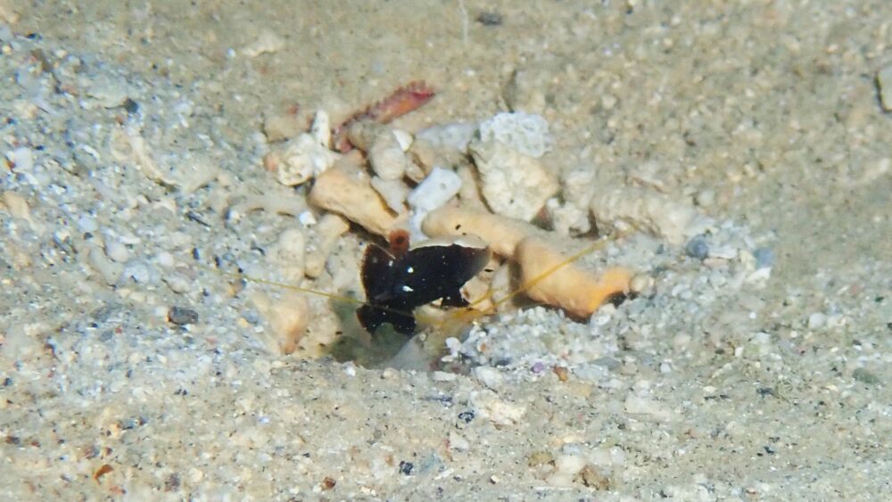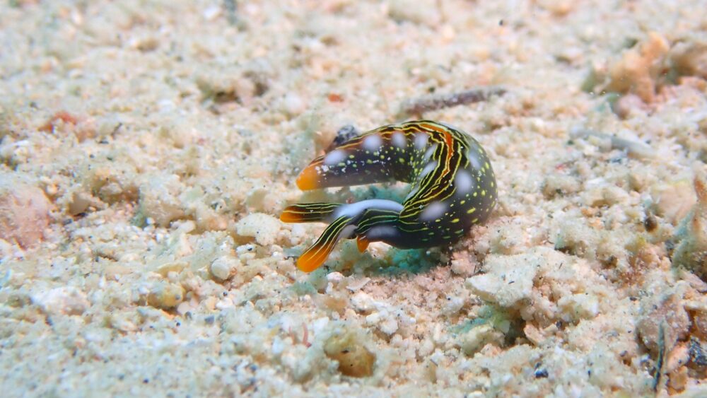 砂地を這っているハナミドリガイ、今日は数匹見つけました!白点がかわいいですよ。