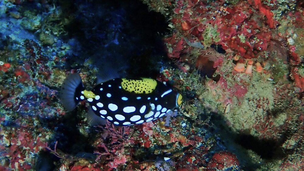 モンガラカワハギの子供っぽい子がいて、逃げていくところを写真撮りました!