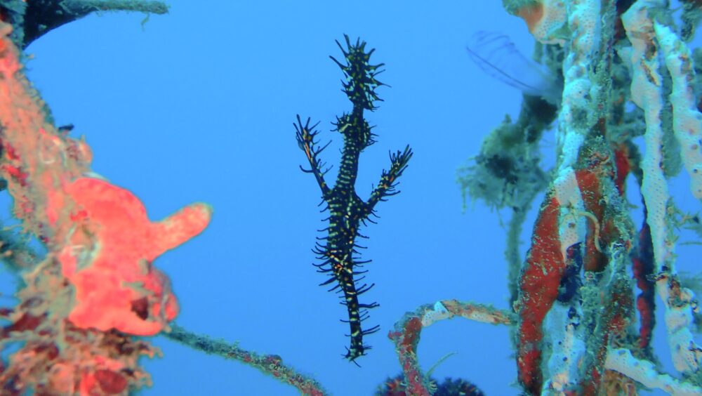 網に擬態して見つけにくかったですが、上の方にニシキフウライウオいました。
