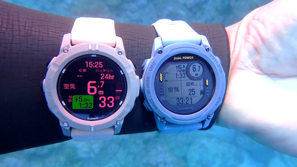 今回はガーミンのG1とカラー表示のG2を比較して潜ってみましたが、見やすさはG2良かったな~
