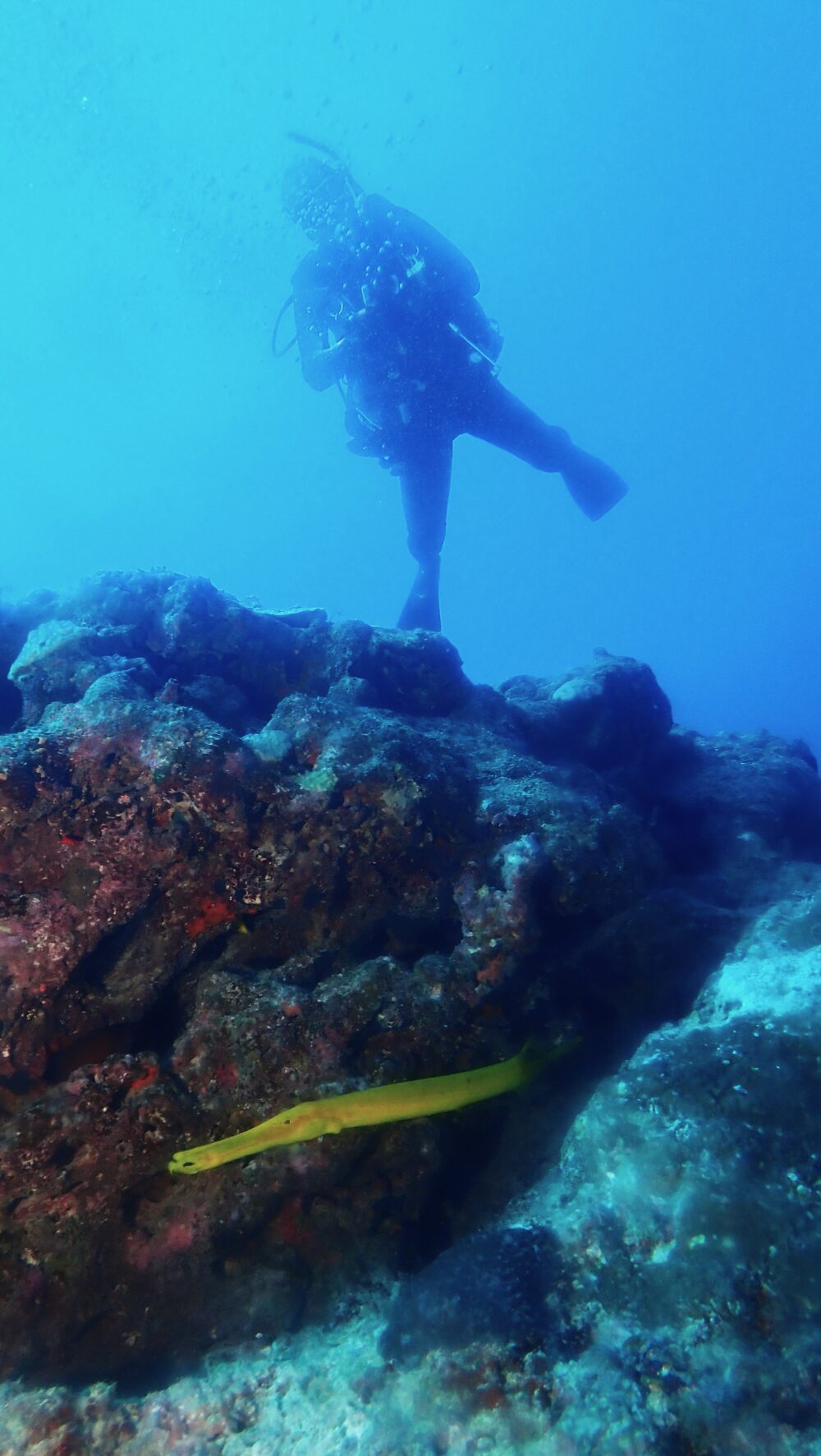水中は少し流れのあるミニドリームでした。天気はいいけど、海況は北風吹いてるもんな~
