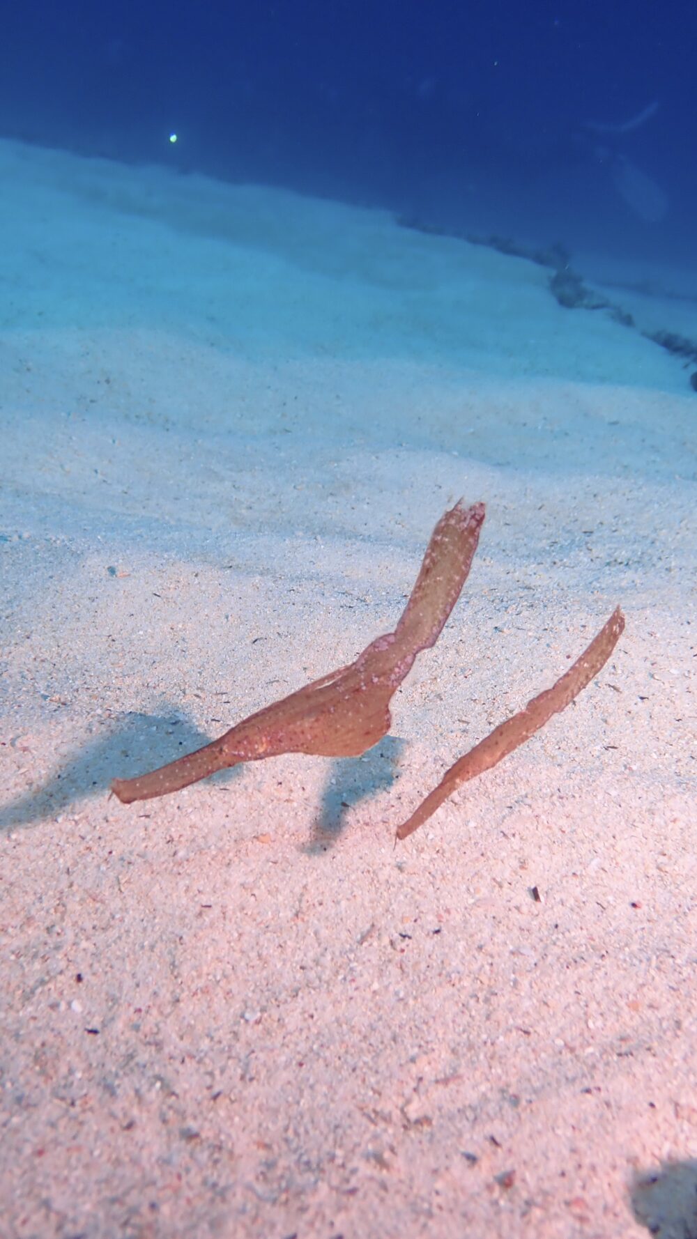 この前も見たカミソリウオのペアです。まだいるかな~?と思って見ていたら少し離れたところにいました。孵化は約3週間ほどですが、まだメスは抱卵中でした。