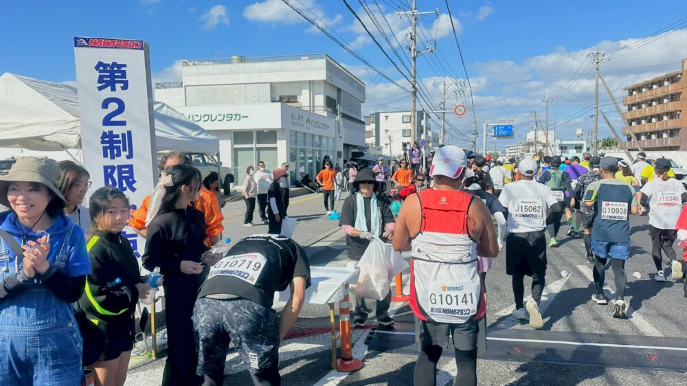 34.3kmの第2制限地点まできました。昨年はこの辺りから足切りの放送流れてきてたんだけど、今回はまだ大丈夫そうでした。