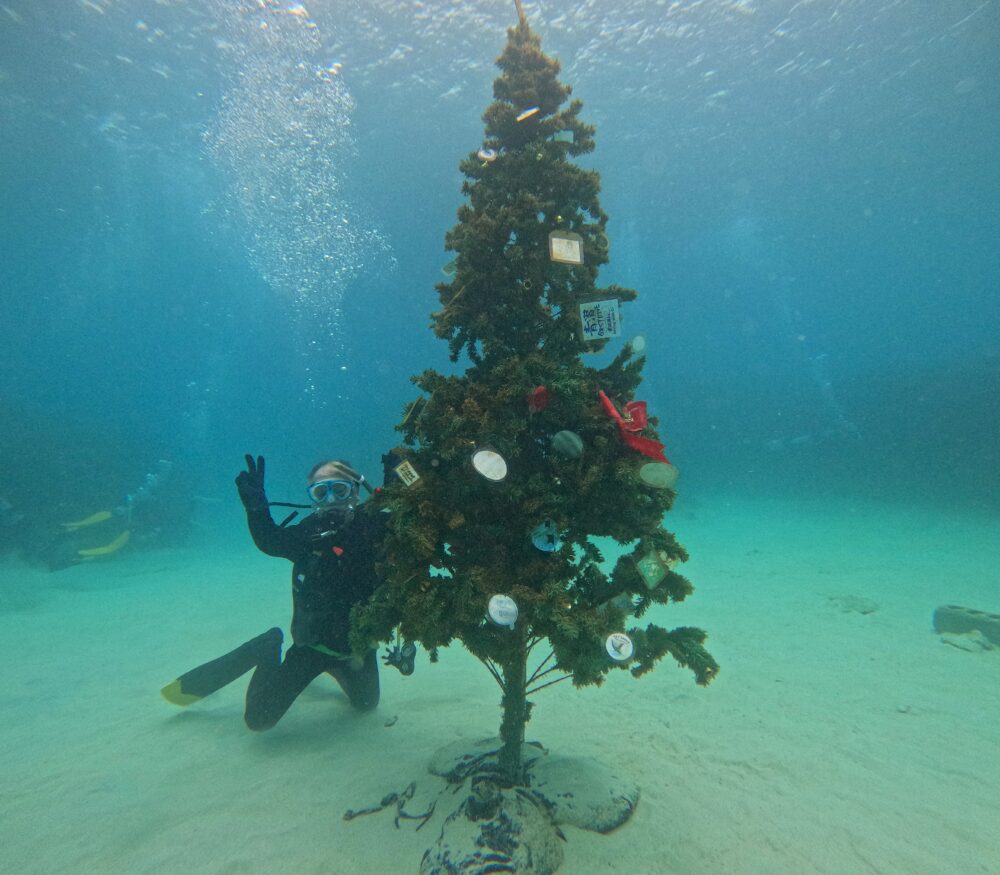 水中に飾られたクリスマスツリー、立派な木がたっていましたね~