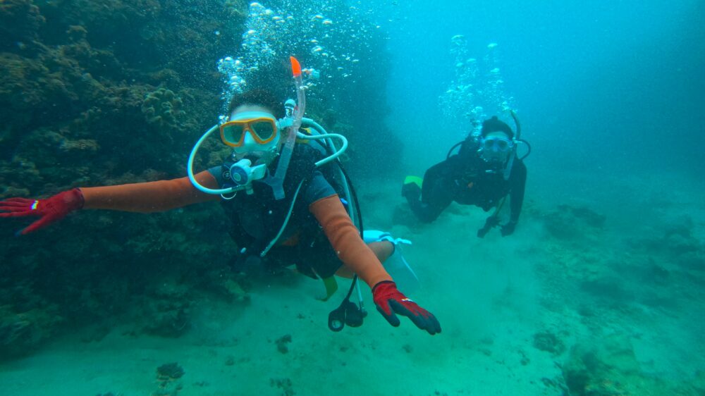中性浮力の練習、慣れるまではインフレーターホースを持って練習するのがいいですよ!