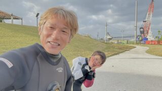 正月早々、遊びにきてくれたOさん、沖縄も冬は21℃になるからドライスーツはいいですね~