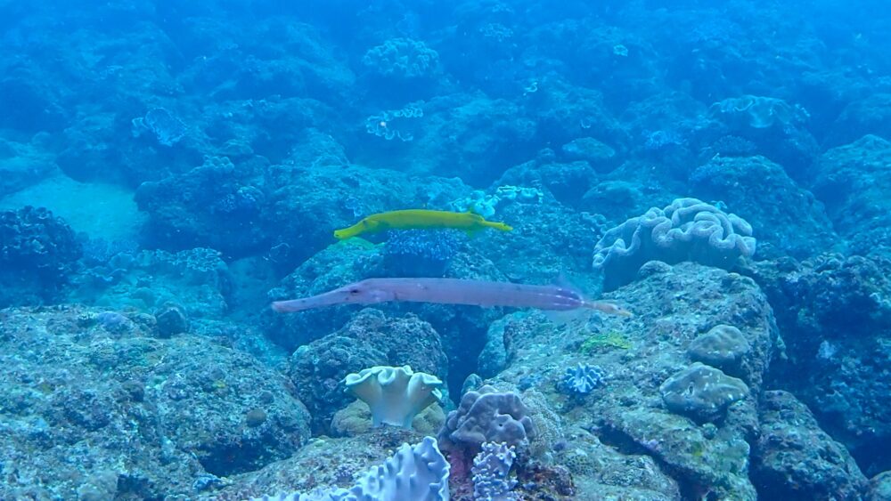 ヘラヤガラ、シルバーとゴールドが並んで泳いでいました。めずらしい~