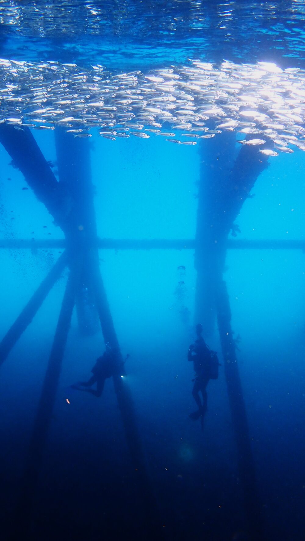 桟橋下では、まだミジュンがグルグル群れているんだよね~