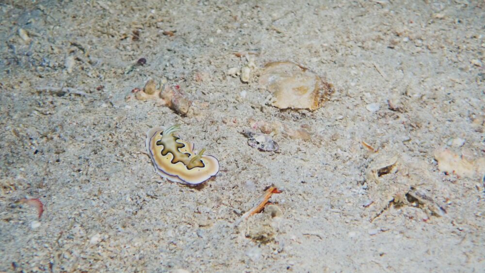 ウミウシも昨年よりも少ないような・・・、砂地を歩いているシラナミイロウミウシがいました。