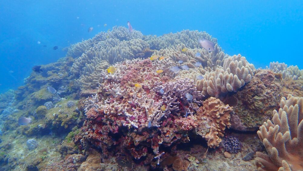 サンゴに群がるネッタイスズメダイなどがいいんですよね!