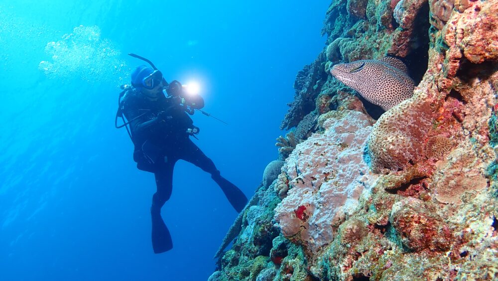 やっといい天気と海況になって万座に来ました。3日目のNさんです。
