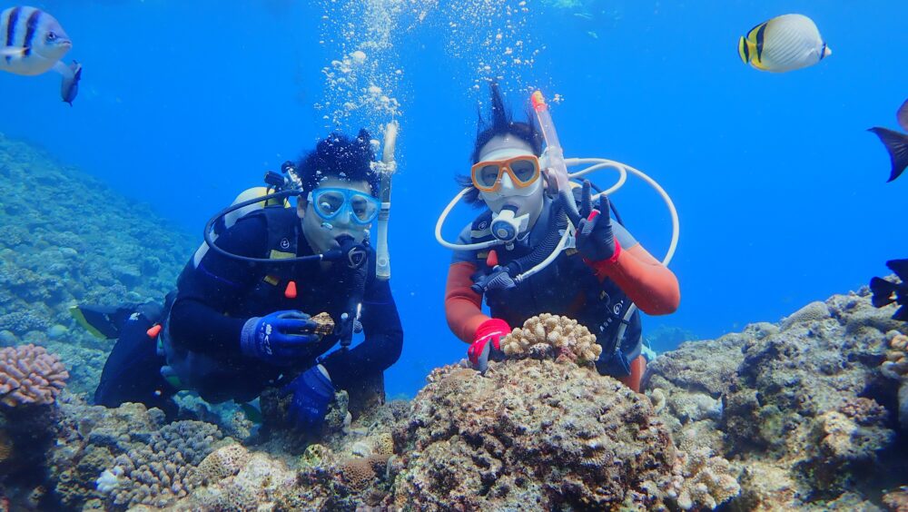 チョウチョウウオはペアで行動する習性があります。まさにダイビングにぴったりなロマンチックな魚ですね!💕またぜひ海に帰ってくるのをお待ちしています🤿